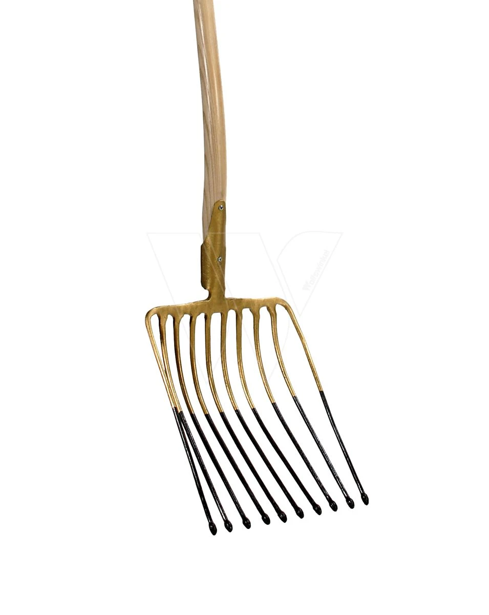 Deze aardappelvork heeft 9 tanden. Hij is geschikt voor het optillen van los materiaal, zoals bijv. kleine aardappelen, graan en kunstmestkorrels. Deze vork is voorzien van een D-greep, dit tilt makkelijker bij grote hoeveelheden. De tanden van de vork zijn aan de onderkant bot, zodat de aardappelen etc. niet beschadigen of aan de vork blijven steken. De afmeting van de vork zijn: 136x27cm (h x b). Deze aardappelvork heeft een gewicht van 2538 gram.