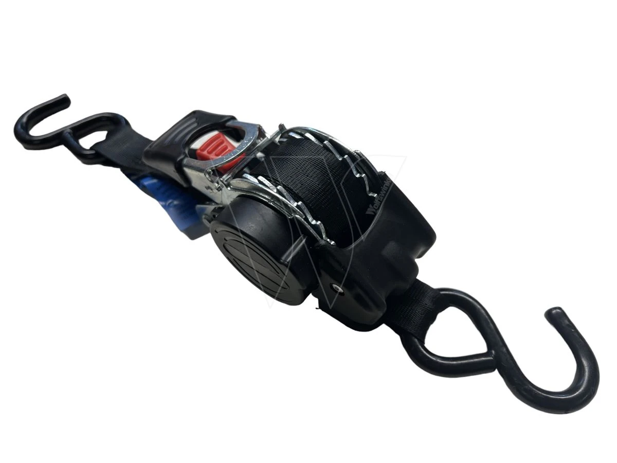Eenvoudig en veilig vastzetten van de lading. Vervaardigd volgens DIN EN 12195-2, band van 100% polyester.