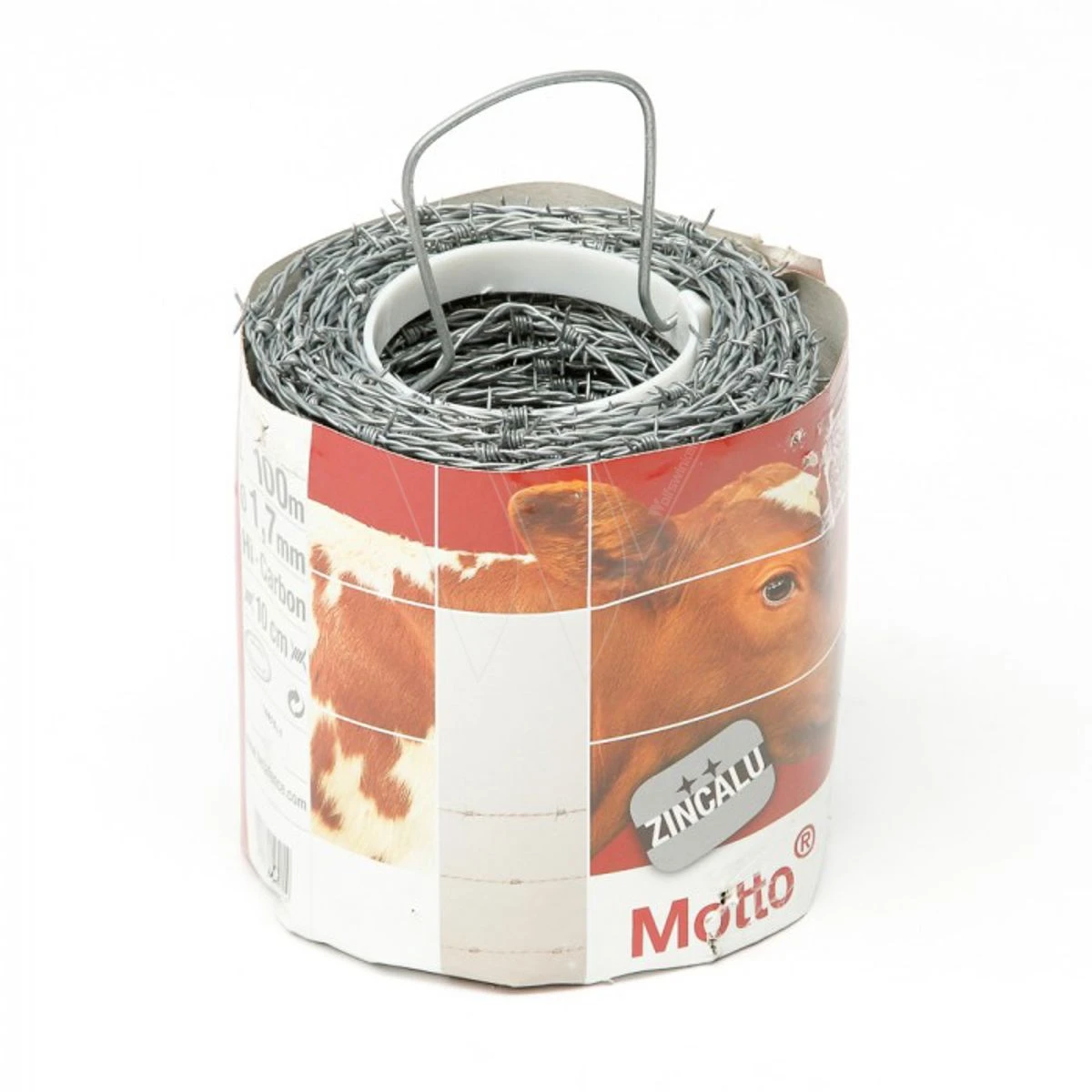 Vervaardigd uit 2 hoogkoolstofstaaldraden, voorzien van Zincalu coating (legering van zink en aluminium). De draden zijn getordeerd, om de andere prikkel in een tegenovergestelde richting, en om de 10 cm voorzien van vierpuntsprikkels. In veiligheidsverpakking.