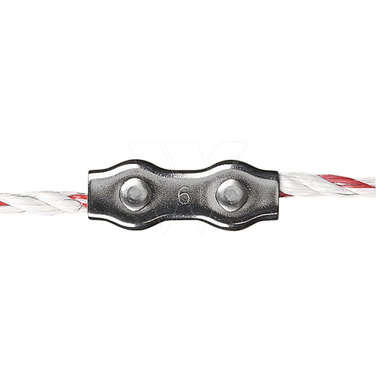 Met deze cordverbinder verbindt u twee stukken cord met elkaar in een afrastering. Hiermee heeft u gegarandeerd een goede geleiding van de stroom. Het alternatief, de draden alleen om elkaar heen draaien, levert veel storingen op en bovendien stroomverlies. De productgarantie op de roestvrijstalen cordverbinder is 10 jaar.