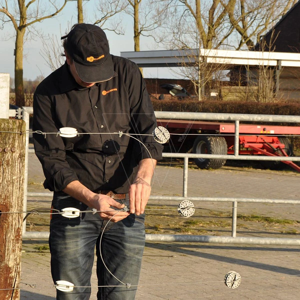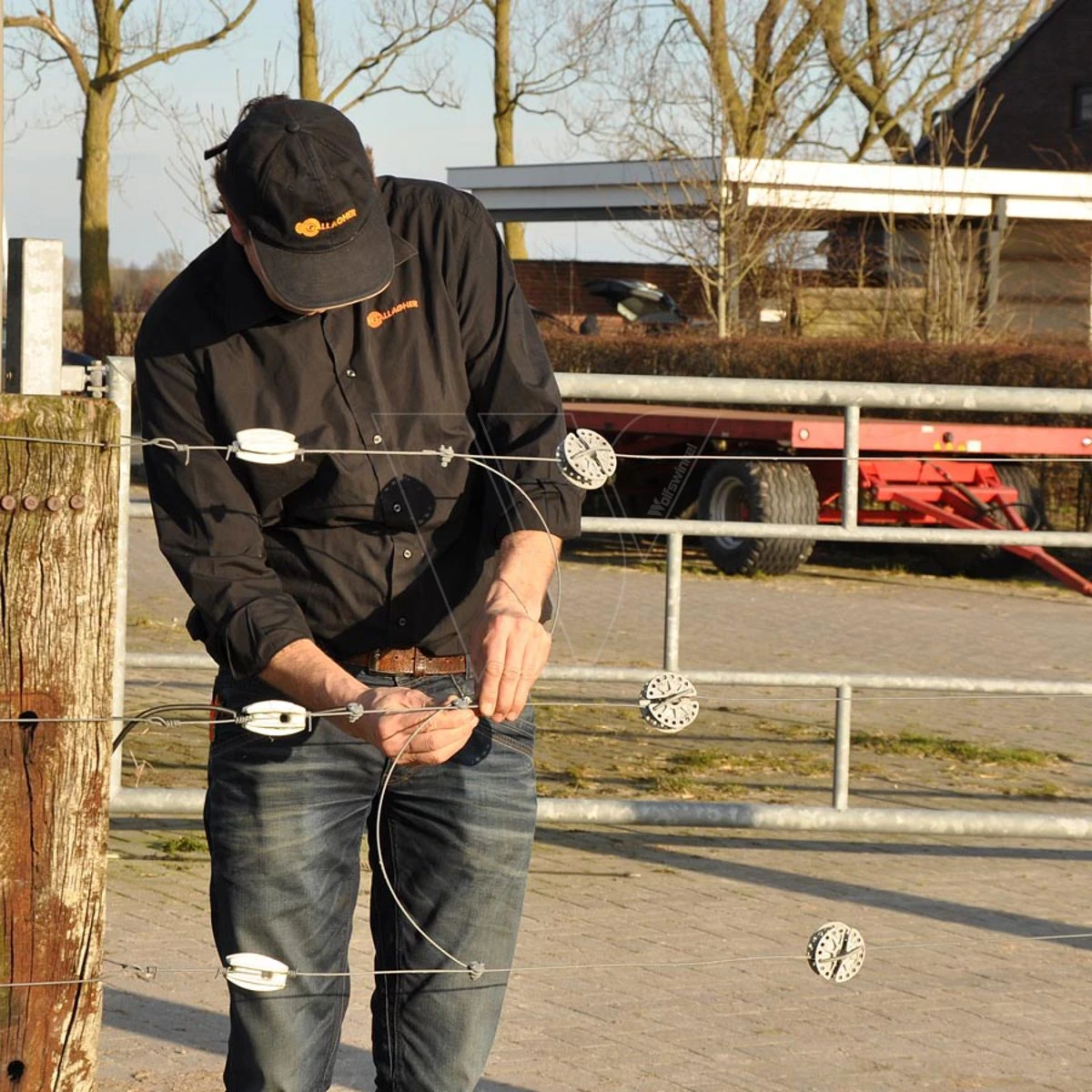 Met deze draadklem verbindt u twee gealuminiseerde draden met elkaar in een afrastering. Hiermee heeft u gegarandeerd een goede geleiding van de stroom. Het alternatief, de draden alleen om elkaar heen draaien, levert veel storingen op en bovendien stroomverlies. De productgarantie op de draadklem is 10 jaar.