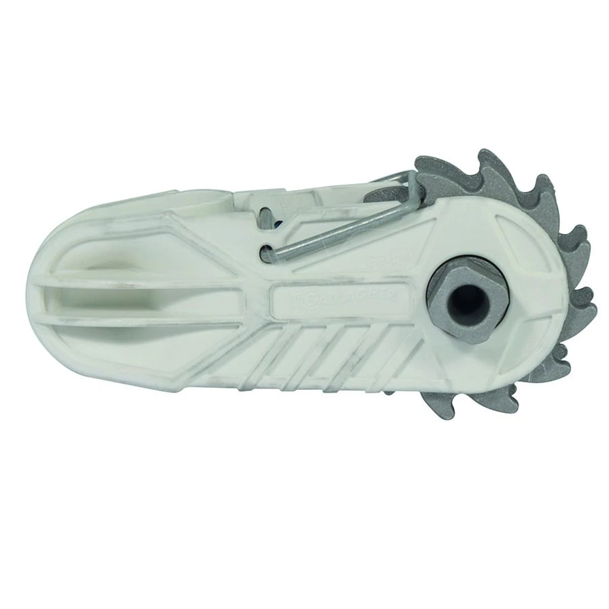 De draadspanner heeft een gestroomlijnd ontwerp met supersterk polycarbonaat om roest te voorkomen. Geïntegreerd in het ontwerp is een draadklem voor het eenvouding monteren van grondkabel of doorverbindingen.