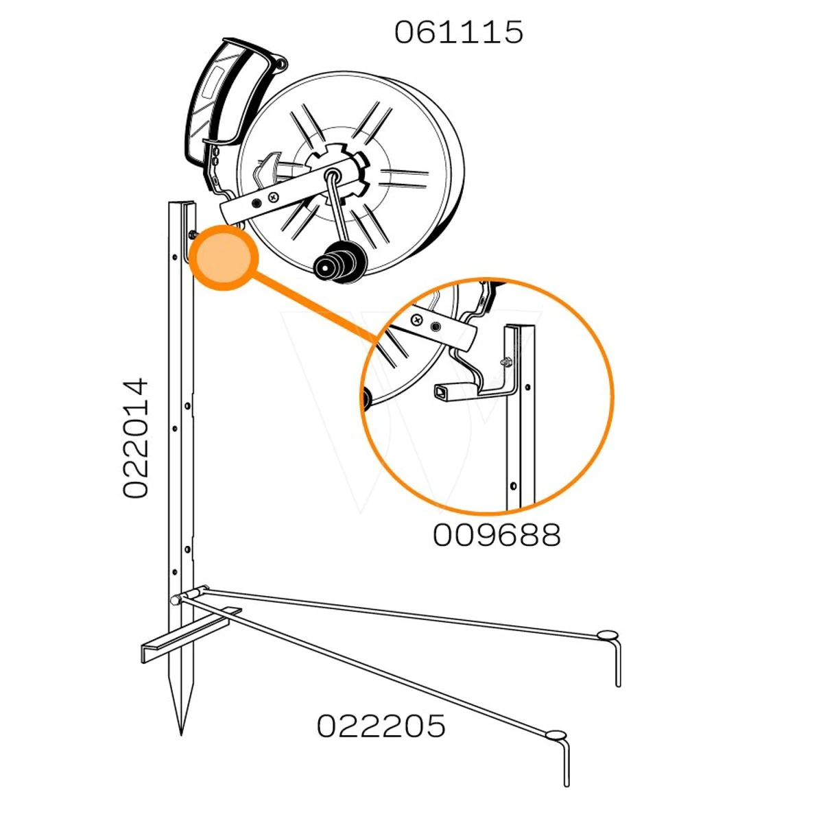 - IJzeren begin-/eindpaal voor montage 3 haspels