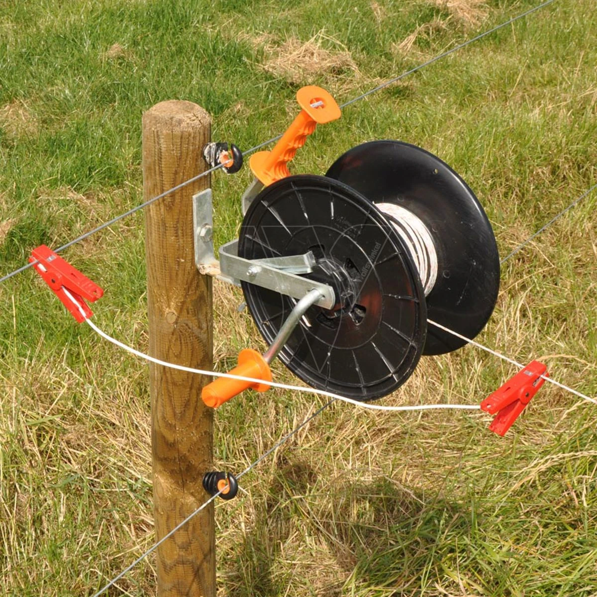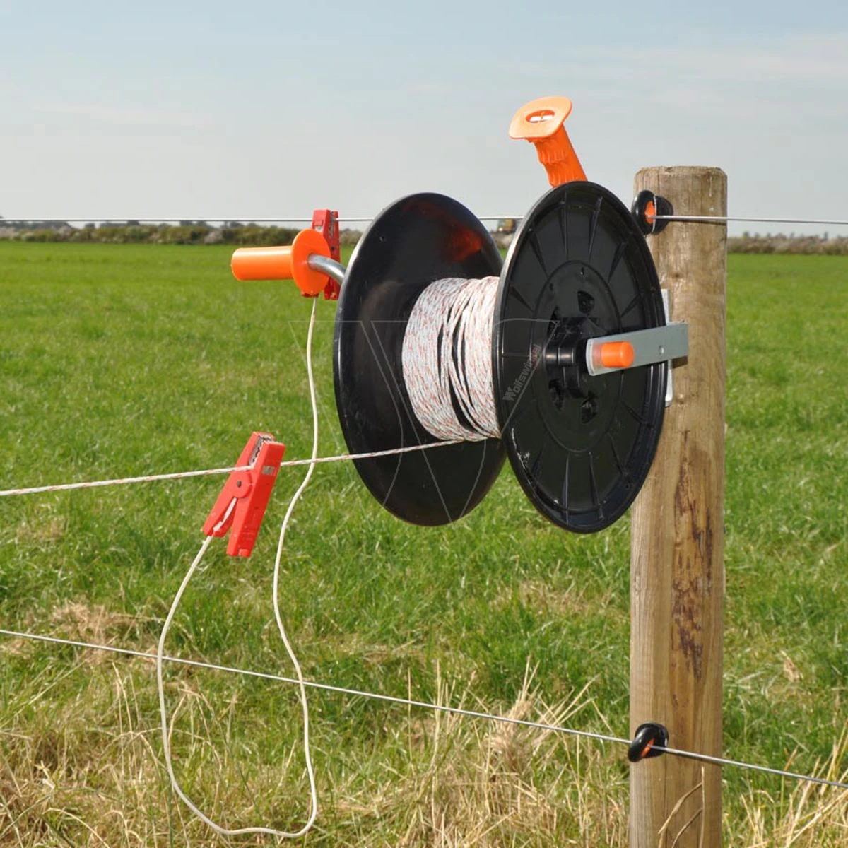 Wanneer 3 kunststofdraden/linten boven elkaar worden gespannen, kunnen door middel van deze kabelset de draden onderling bij de haspels worden doorverbonden.