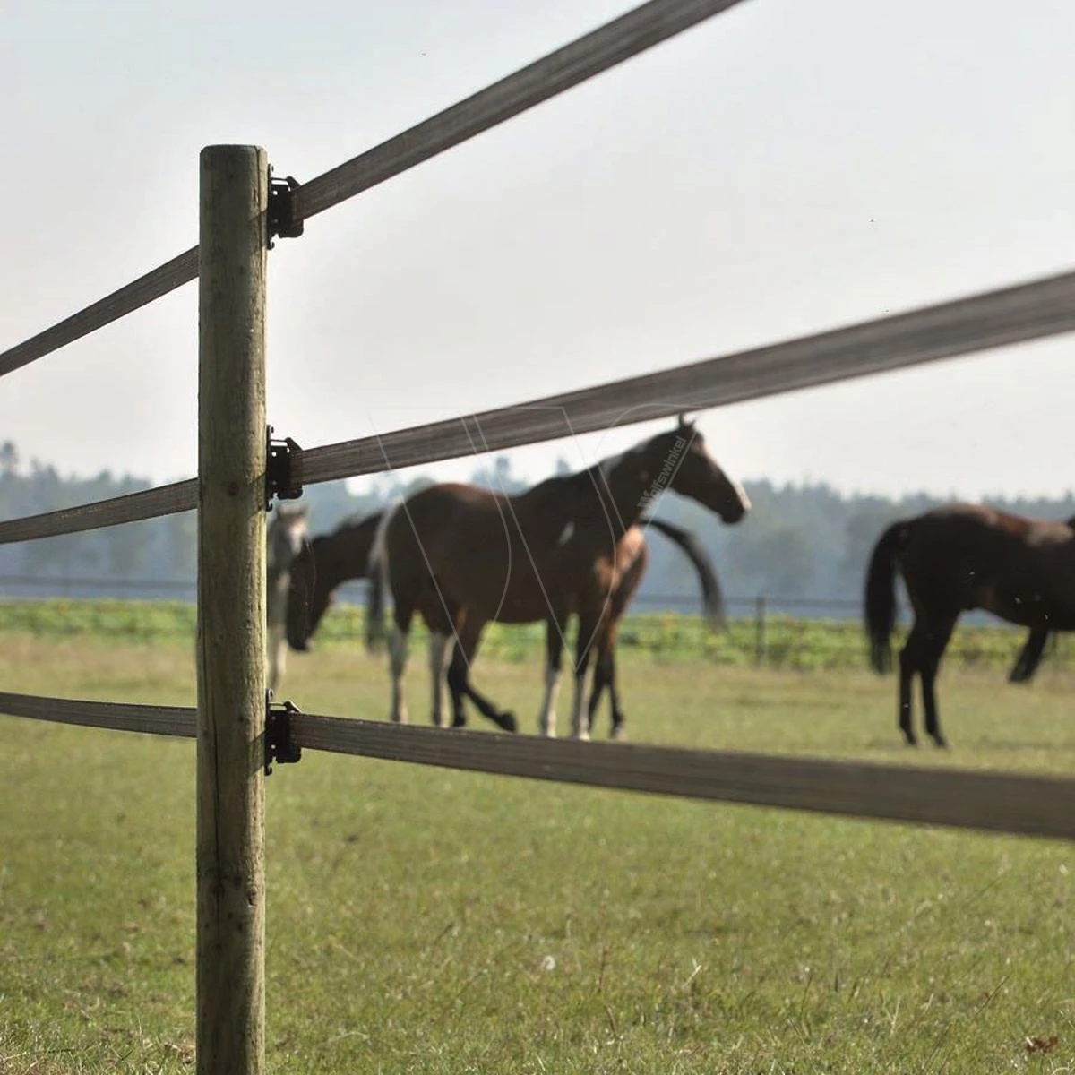 Goed zichtbaar stevig lint voor verplaatsbare afrasteringen voor paarden. Bedoeld voor afrasteringen korter dan 500 meter. 11 dikke roestvrijstalen draden van 0,20 mm en 1 lichtmetalen draad van 0,25 mm zorgen voor een uitstekende geleiding. Het lint heeft een zwarte kantdraad ter versterking. De UV-garantie op het Powerline 40mm lint is 5 jaar